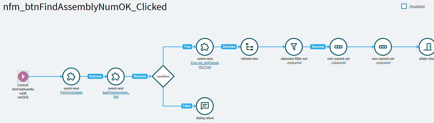 OnSuccess of your BAQ call… I added a condition. The BAQ should return one row. And ONLY one row. A job can’t have two assemblies with the same AssemblySeq. But, it COULD have no matching rows. For example, a user types in a target assembly number that doesn’t exist on the job. In that case, I want to put up an error message.