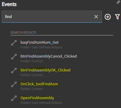 If you look at the existing events in App Studio and search for “find”, you should see the below: