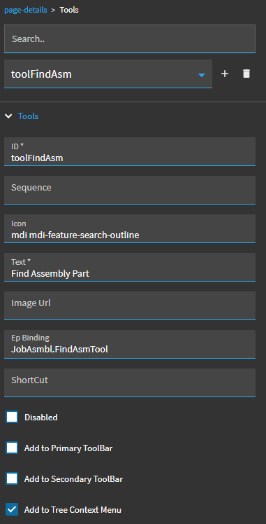 Again, we can copy the existing Find Assembly Part tool.