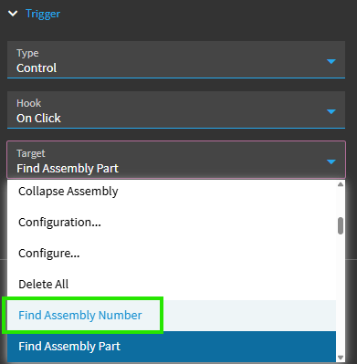 - Change the trigger to be onclick of the “OK” button of your Find Assembly Number page. The bad thing here is that the list shows each button’s label text. So, you would select the one that just says “OK”.