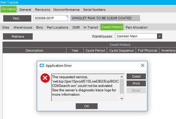 Second - what different ways do I have to track what all bins a part exists in? I have tried Part Tracker but every single time I hit ANY of the retrieve buttons I get an exception. (see 3 screenshots)