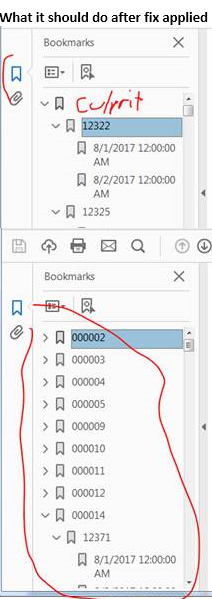 Yep that works as a workaround. Eventually Adobe will fix its Bug, so it would be stupid to modify 100s of reports. But if you google the error, you will see 100s of unsolved cases and I couldn’t find that bug anywhere on Adobe’s Known Issues Lists. They mentioned several times “It’s been fixed” but I think that is a common corruption error and they might not know about the “Bookmarks Blank” Bug yet. If anyone has an account with Adobe, send them to this Forum post