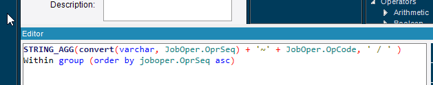 Could adding the “Within group (order by joboper.OprSeq desc)” be blocked since I’m on epicor public cloud?