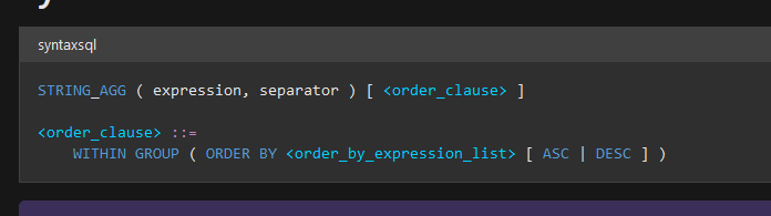 STRING_AGG function is fast but doesn’t sort at least for me in Public Cloud.