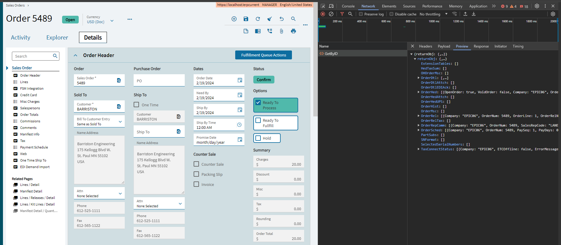 Hi Ben, sorry, if you hit F12 when you are in the browser it will open the console and if you navigate to the network tab can you see what tables are being retrieved from the bpm / customization you have in place to retrieve the Customer table?