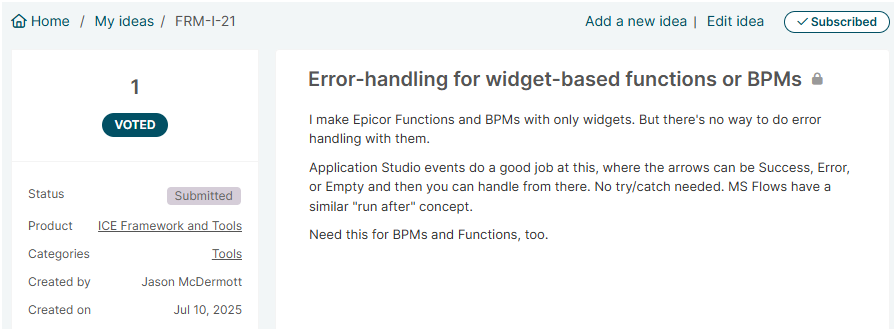 On Friday, it’s EpiUsers Frideas Day! Have you been to the Epicor Ideas Portal recently? If so, are there some ideas you want to encourage other users to vote for? Maybe want to add comments to an existing idea?