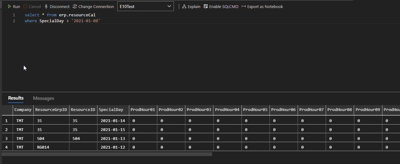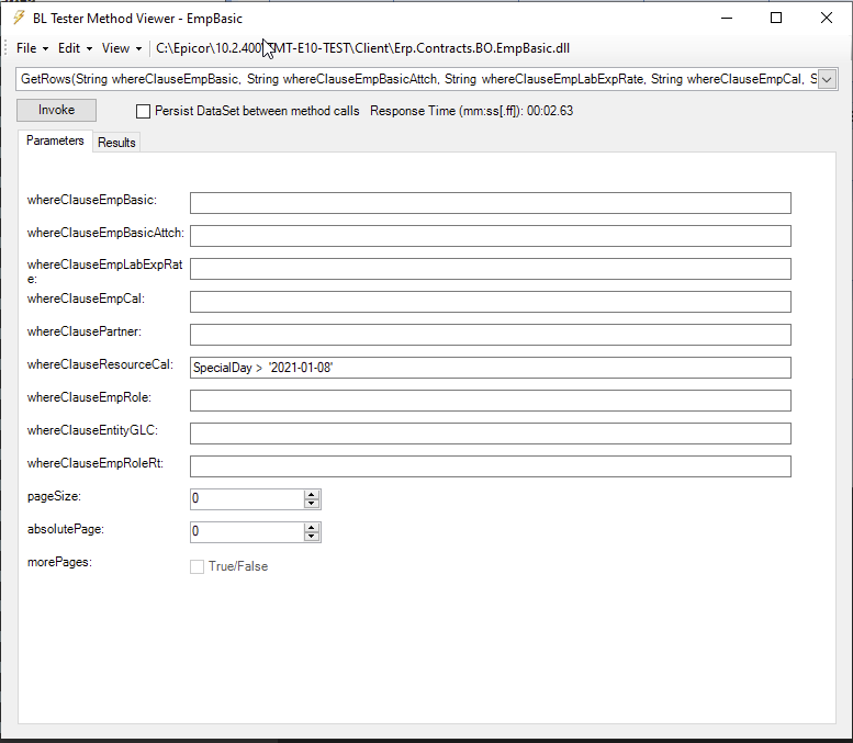 I also tried a few other where clause’s in the whereClauseResourceCal and they didn’t work either. It appears the where clause is ignored - ticket submitted to Epicor.