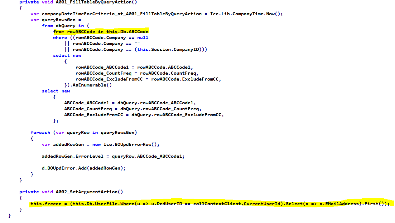 Here is Epicor’s Fill Table Generated Code and below my widget expression despite the Designer Error:
