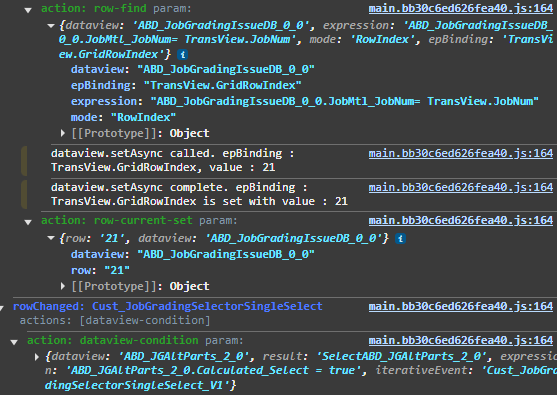 Using the row-find and row-current-set I can see the index getting set in the debugger, but it does not update the grid. I’ve seen a few threads on using the row-current-set using the rowindex, or even using js to set the index for example using #(trans.dataView(‘’).row)# as the expression. as well as references to using the viewRow value… nothing has got it to work.