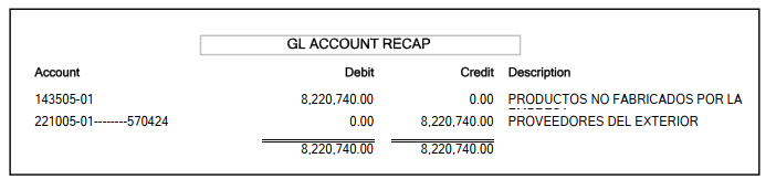 Working with an AP invoice test, the accounts appear as follows