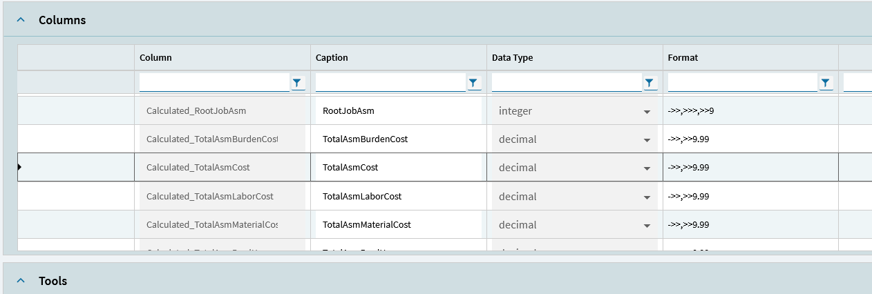 On one of my Kinetic dashboards, I’m got a decent set of decimal fields sourced from calculated BAQ fields. In the dataview, they show properly as decimal. These fields represent cost, and it would be nice to display them in traditional currency format (e.g. $123,000.00). By default they are displayed without the dollar sign or any commas, and too many fractional decimals. Normally, I have been able to correct this by changing the column editor to currency or decimal.