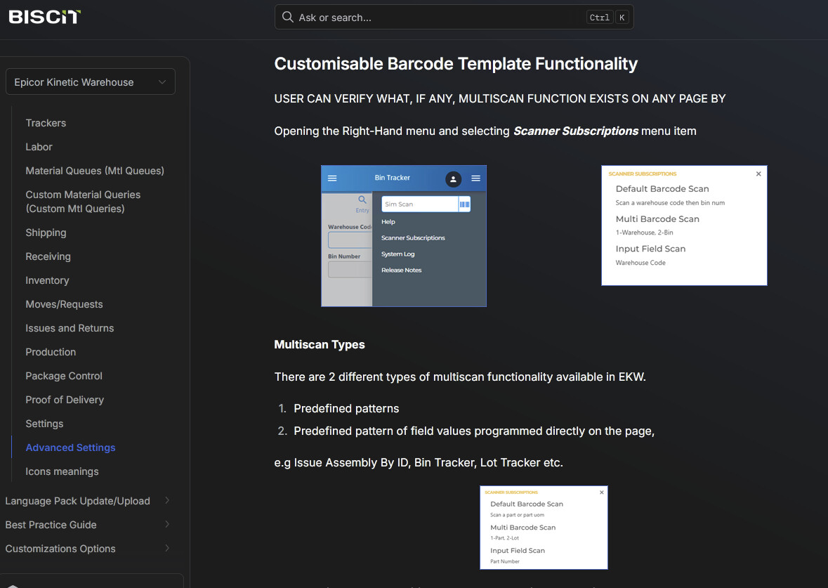 One thing I will note, is (I believe, I actually could be wrong reading the doc now) that the multi field scan template is screen specific and not universal, so it doesn’t work everywhere. So if you’re having issues finding the settings for whatever you are doing, make sure that the screen you are trying to set up supports multi field barcodes. But that’s just been our experience, although we haven’t dug into it that much.