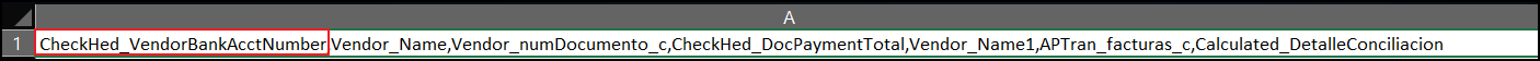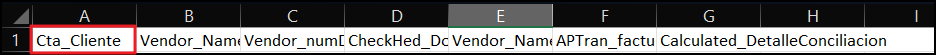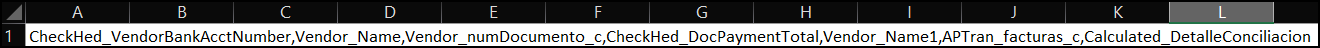 I think that entire header row is not being exported to CSV. What is being exported is the data row, the one with field names [CheckHed_Ven],[Vendor_Name]… etc etc.