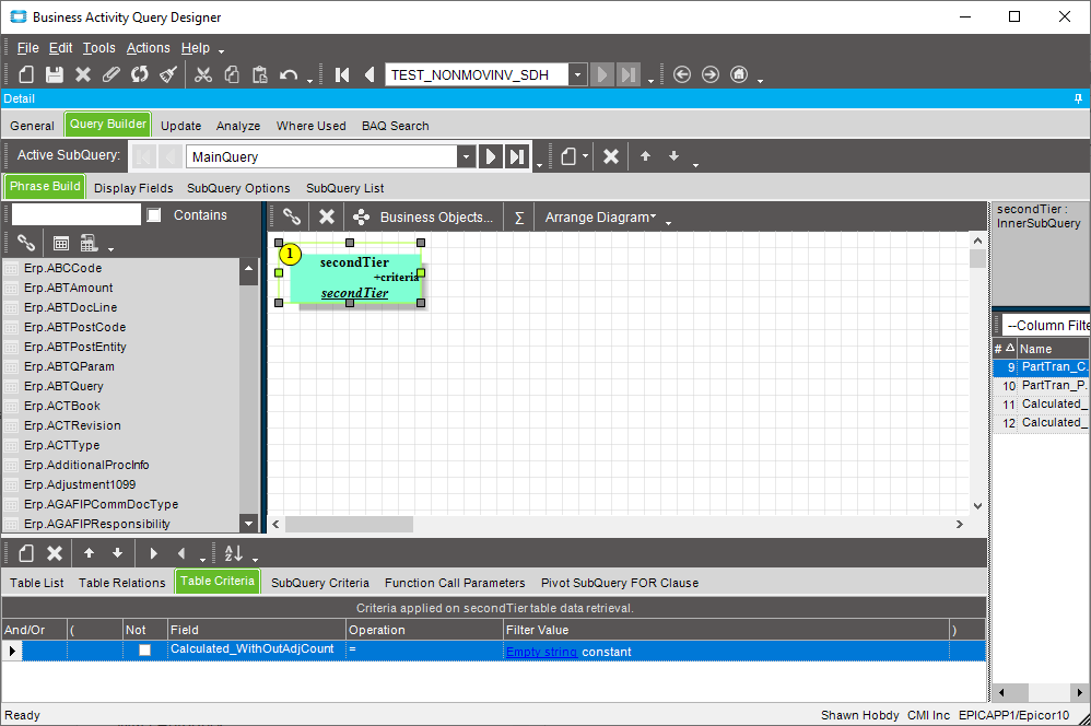 The Empty string wouldn’t run. It gave: Criteria value is not defined for ‘secondTier’ table, in criteria row #1. Select filter value from the dropdown and click on links to specify filter conditions.