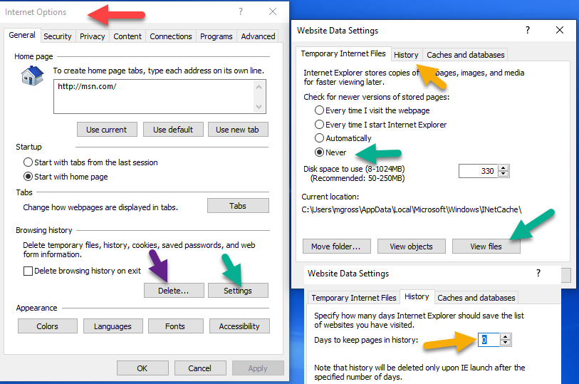 Second - Green Arrows - go through and set āNeverā to prevent new files being created, and then go to View Files - this opens File Explorer - select all the files and delete them. Strange thing I noticed is that the Epicor Cookies were still here, even though I deleted them in step 1ā¦