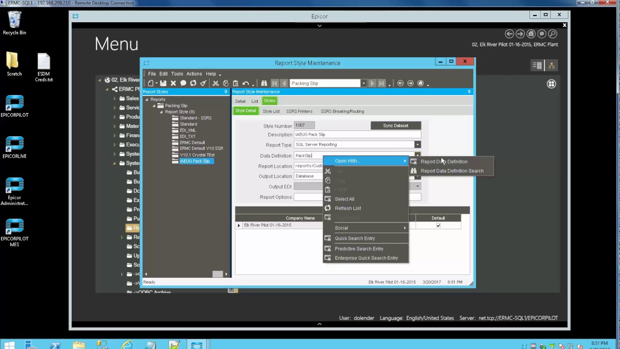 Epicor ERP Epicor SSRS Reporting > Modify System Reports > Workshop - Add a Table\Colum