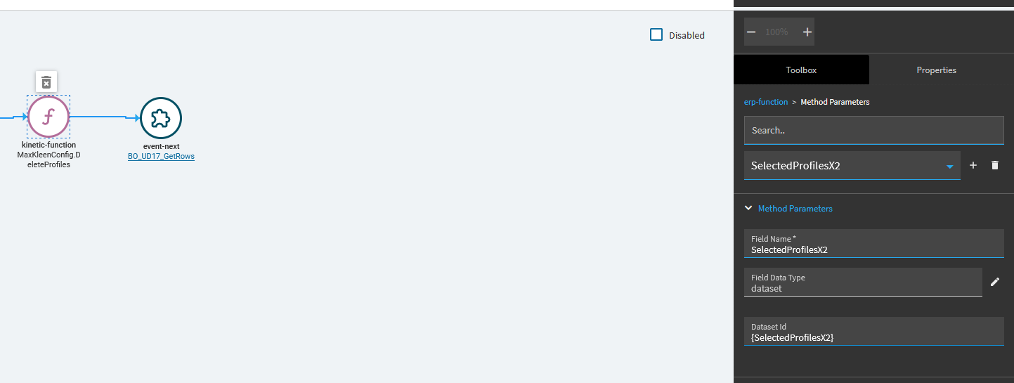 Iâm mobile at the moment so canât reference on the computer and get screenshots and stuff, but if you use a kinetic-rest widget and populate the function library field appropriately, and put the function under.. method I think? You can then set up rest request parameters, from there you can have input dataview name xxx, parameter name to send yyy, that should work.