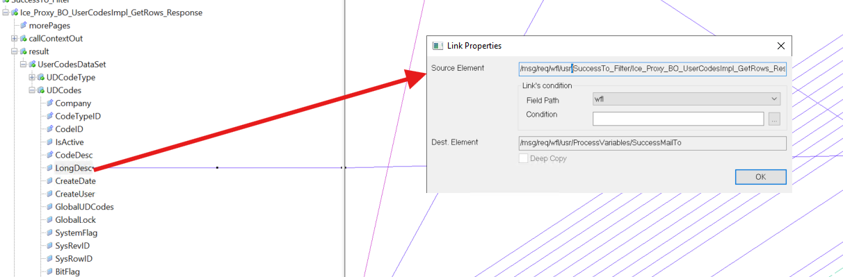 The mention of Ice_Proxy_BO_UserCodesImpl_GetRows⌠and the mention of DataSet in the result name tells me that the data used to fill SuccessMailTo is taken from Kinetic.
