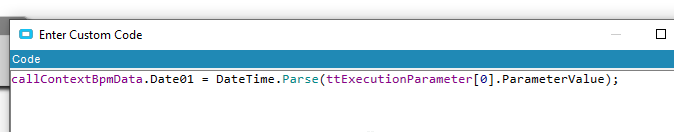 I have an updateable BAQ with an advanced BPM to update a field. Everything works great except that when I run my BAQ, I set up a parameter of a date. I want to be able to get this parameter in the custom code.