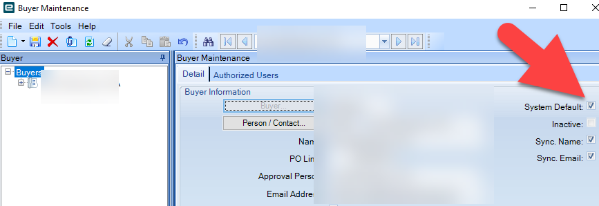 I setup a new Buyer group. I called it MainBuy (character limit here sucks!). Right below buyer you have to choose a person/contact. I left it blank, then added myself as the only authorized user and system default buyer (and default auth user). When I added myself as the authorized user, it filled in my person/contact info. What have others done here if you use a generic buyer? Do you still have to tie it to a single person, or do you make a generic person/contact?