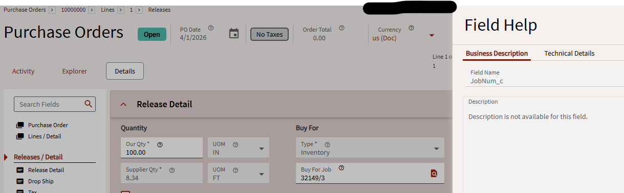 I can see the description I created in UD Column Maintenance but its only in the technical details side: