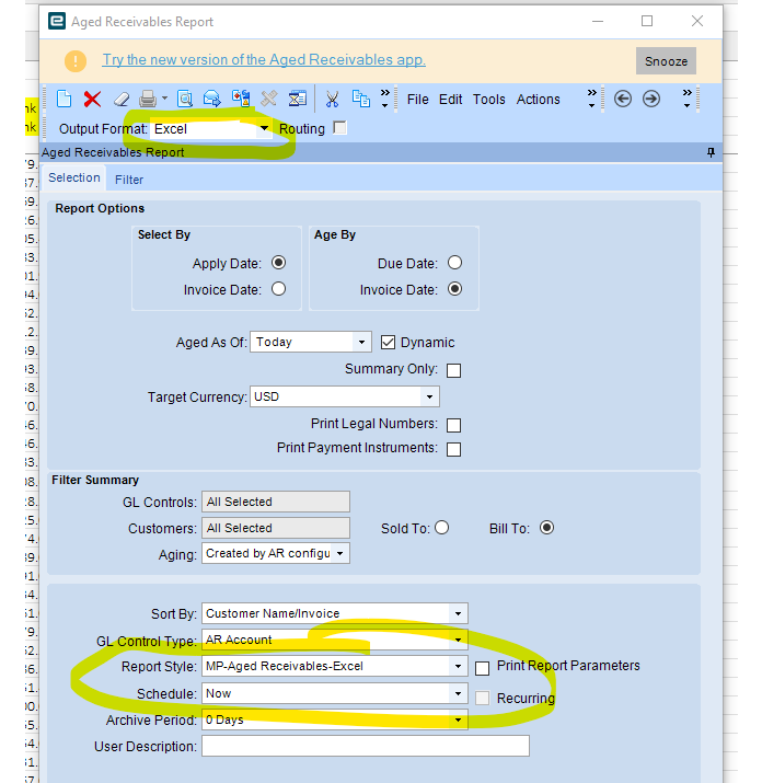 You’re talking about two totally different reports. You’ll need a new style in the “Journal” report style which is style ID: Journal (AR Receivables style ID is: ARAgng). You’ll likely need someone who knows SSRS to design as I doubt Epicor’s Standard - SSRS version of the journal will export cleanly to Excel.