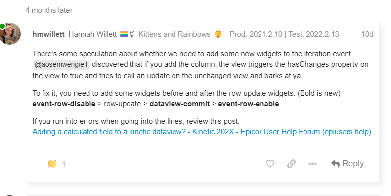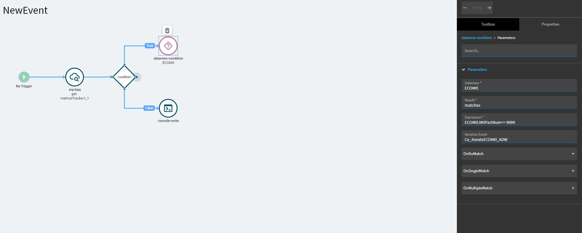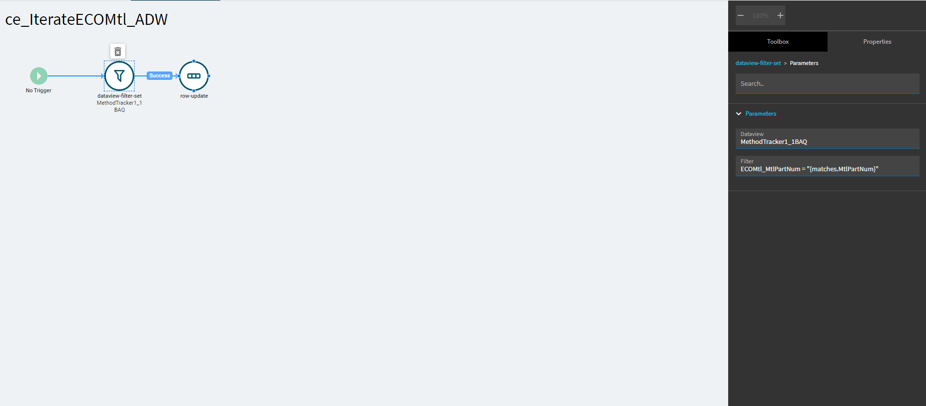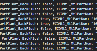 That wasn’t it either. But just to be sure I am understanding, the ECOMtl_MtlPartNum is from the BAQ view? And in the row update I’m setting matches.PartPlant_Backflush as equal to