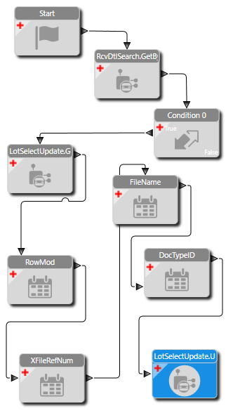 - First is a BO call of RcvDtlSearch.GetBySysRowID where you use the ForeignSysRowID from earlier to get the row for the PartNum and LotNum.