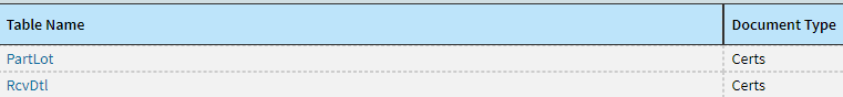 Next is to create the specific table control using Document Type Control Maintenance. Here you select the Table and Document Type. Also select Expose in Tree (it does not work in the web, but I am hoping Epicor fixes that). You want to do this for the PartLot and RcvDtl tables.