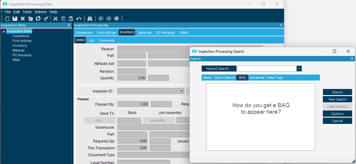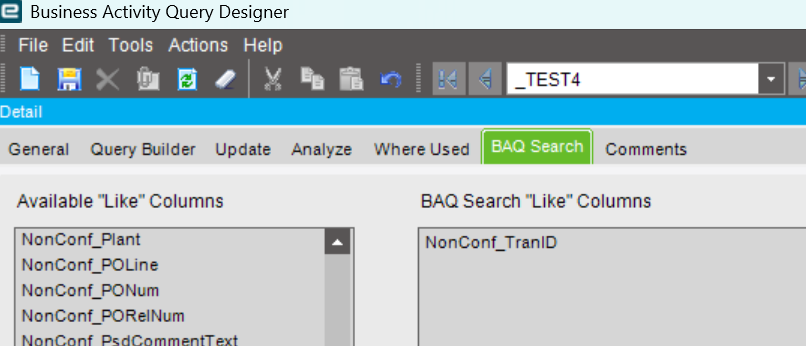 Let’s say I have a BAQ for NonConf table. I want to use it in the BAQ Search for NonConf (Inspection Processing). How do I get it to appear in there?