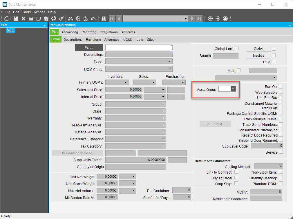 I added a new field to our Part Maintenance screen, But when you load the menu, the epicombo field is active before selecting a part, how do I make it inactive until a part is selected?