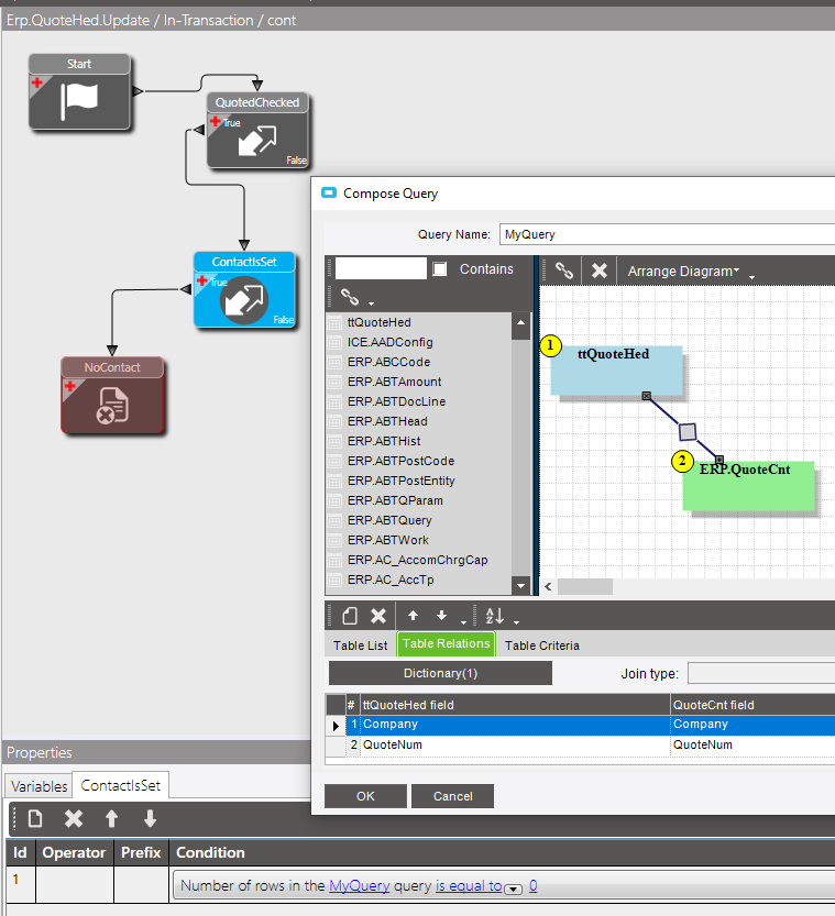 I think the CustNum you are using to determine whether a contact has been entered isn’t the right one. The CustID on the QuoteHead table relates to the “Sold To” customer. I think the field you’re looking for is on the QuoteCnt table. You could try joining ttQuoteHed to QuoteCnt on QuoteNum and Company.
