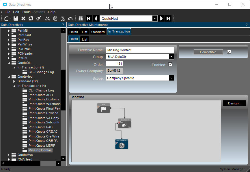 I did an In-Transaction Data Directive on QuoteHed
