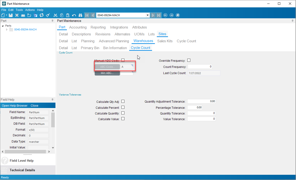 Thanks for that!, quick question you might be able to help me with I have a part tha tin part maintenance says its systemabc is A but when I add using the above menu you showed it populates as B, why would that be?