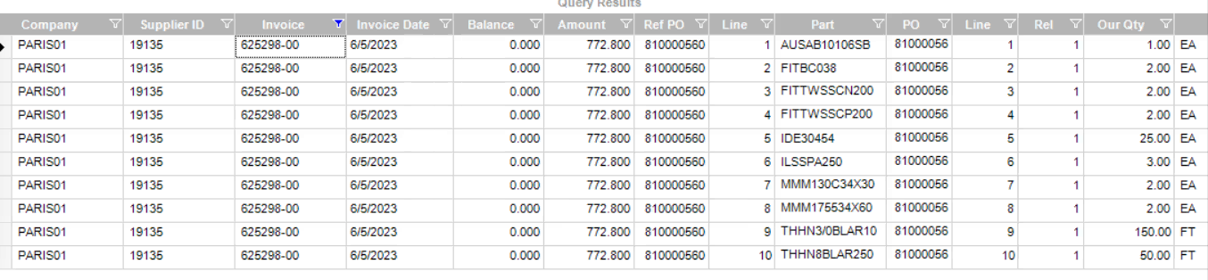I built out Linda’s BAQ - maybe this will illustrate her duplication issue…filtered on one multiline invoice…same header amount appears on every detail line.