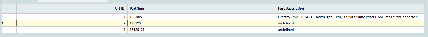 Condition: PartNum is not empty