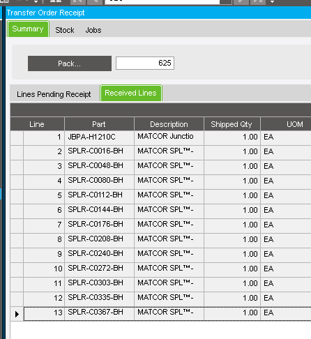 To make things worse, somehow the receipt thinks 11 of the 12 lines were received, but they never were. Only the one line created as PLT-STK transaction, the other 12 still appear to be in the orginating plants inventory.