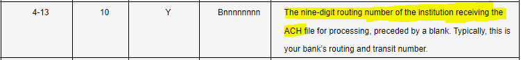 The odd/bad thing is in 10.2.400 when I tried to make the file they had the tax id where the bank id went which is why I knew what it was and they fixed it in line 1. but left it wrong in line 8.