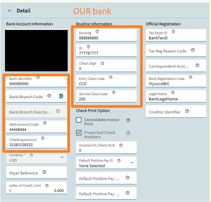 The first red block - my note is wrong; the file is right - that is supposed to be our bank’s routing number