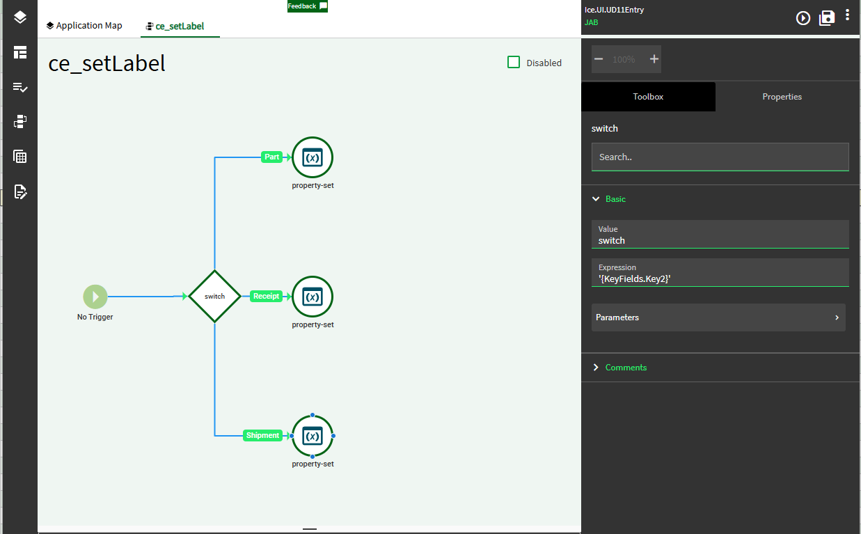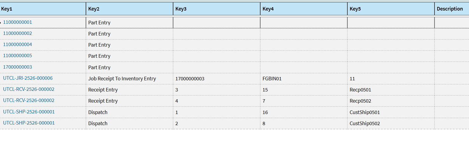I Have Created a Event On-Grid Clik and used condition widget where it check if Key2 field has Part Entry,receipt Entry , Customer Ship Entry and Job Receiot to Inventory Entry and added a Property set Widget after condition