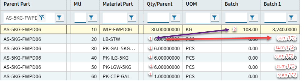 SUM(PartMTL.Qtyper * part.Batch_c)