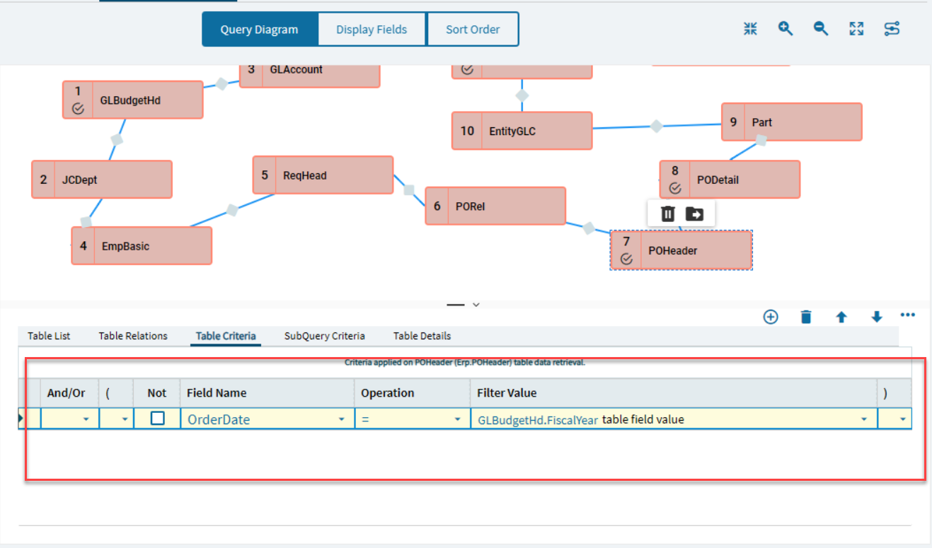You have your criteria set to return records when the OrderDate = the FiscalYear. It’s not going to return anything. You have to compare a date = to a date or a Year = to a year.