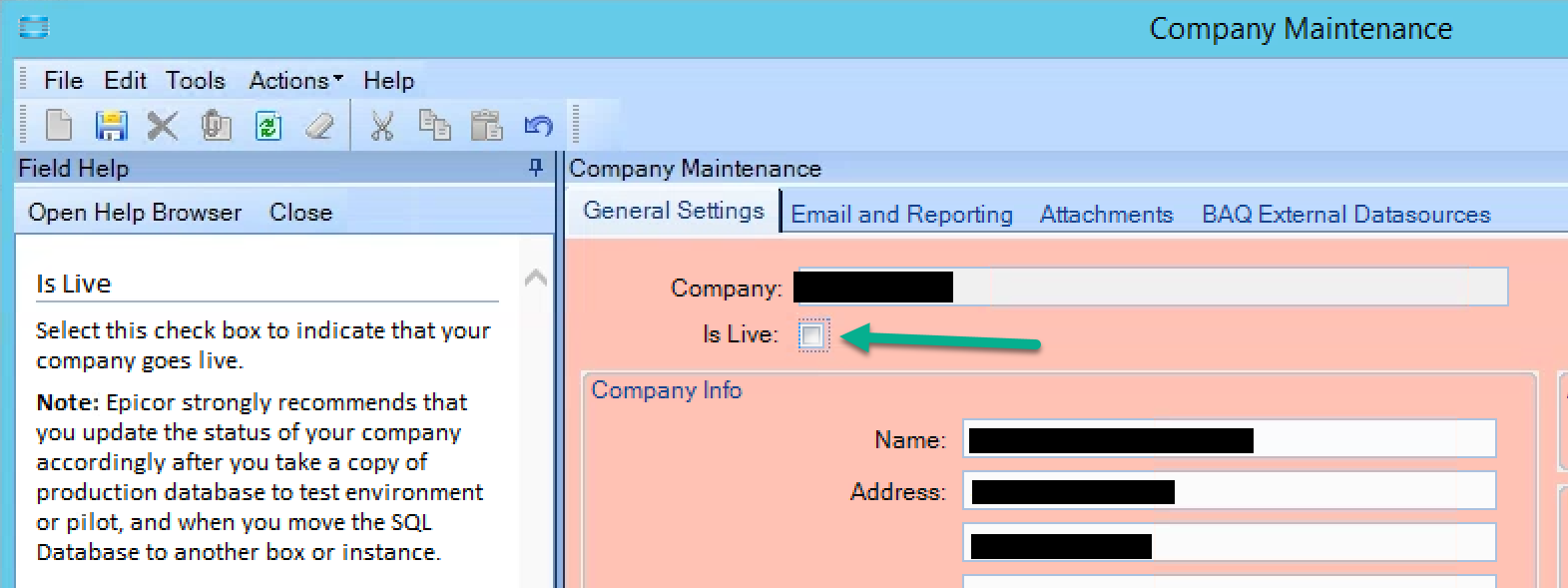 The live designation I suppose you could use any way you want, but I’m guessing Epicor added it due to cloud tenants mostly for their own use in managing customers brought online. Especially if you bring more companies online in multi-company scenarios.