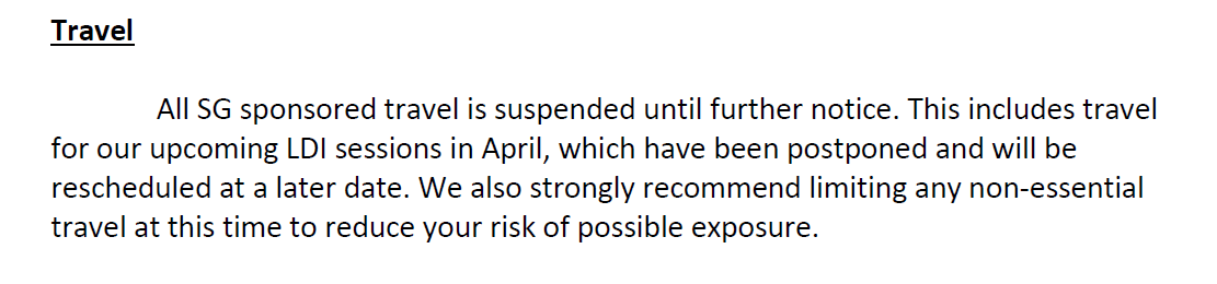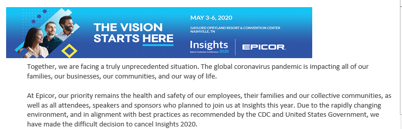 For those of us whose companies are still on the fence – the cancellation policy says April 3rd is the last day to cancel and get a refund (last I checked, perhaps this could change in these circumstances). Odds are things are going to look pretty bad by then, and I think Insights will see a huge number of cancellations in the next two weeks. In my humble opinion this needs to get pushed to the Fall. We’re not going to be out of the woods with coronavirus by May 3rd.