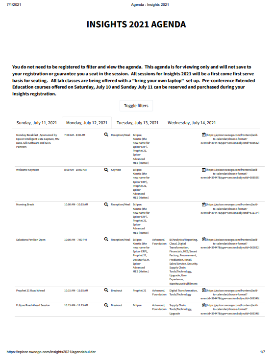 Anyone see a PDF version of the agenda? The agenda builder is setup as individual appointments in your calendar. Sometimes it’s easier for me to highlight courses (can comment a PDF) and decide which section to go to right before the sessions.