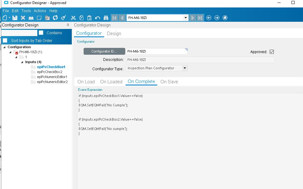 The kicker is, if I put in Context.CompanyID, Context.UserID, Context.SiteID etc. they all display. For some reason, the most important value to querying for an Inspection Planning configuration isn’t available. Is there anyone else out there that can get the SpecificationID? I also tried OnLoad and OnLoaded… blank there too…