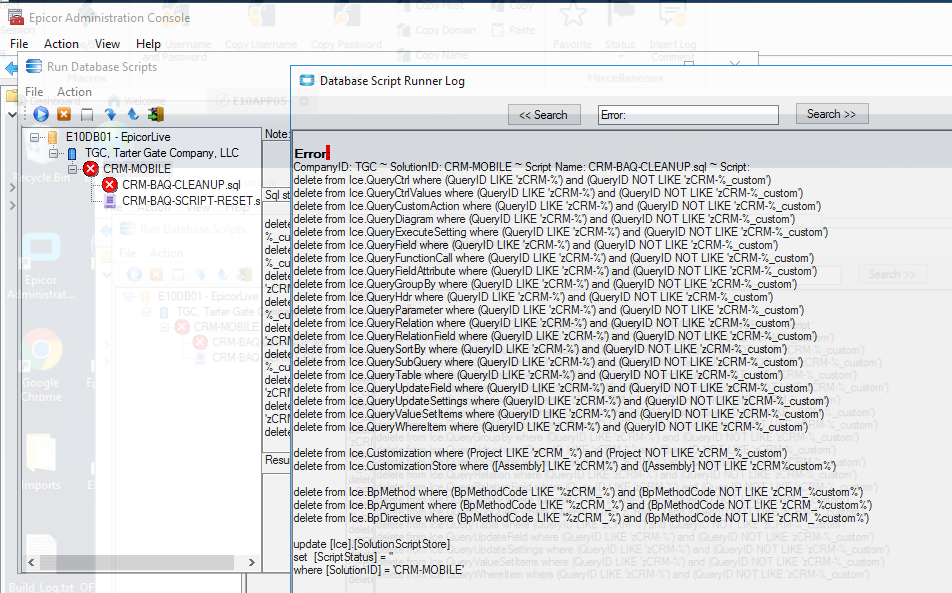 Console. But when running I get and error and looks like it is just running from the company I installed the solution in. Any clues? Looks like there are zCRM baqs in there but they are set as system and not able to be deleted. I would have thought this