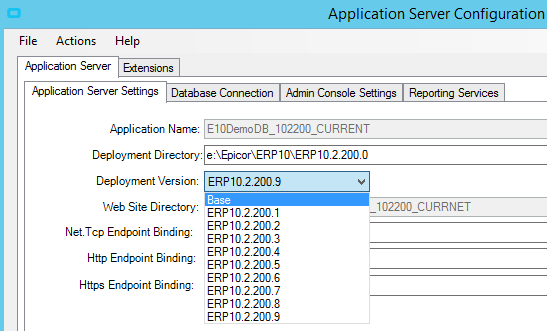 If it isn’t 10.2.200.8, select 10.2.200.8 then click the Deploy button on the bottom right. This will upgrade the appserver to 10.2.200.8. After this, you’ll need to log into the client with a security manager user to complete the Conversion Workbench conversions.