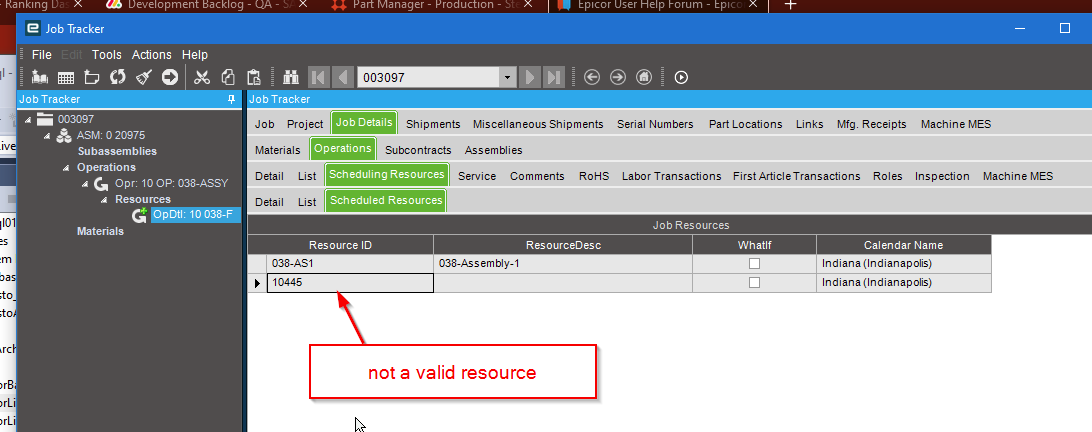 So we ran across a problem yesterday, where someone could start activity on a job, but whenever they went to end activity, they got a null reference error. After copying the database and debugging, we finally found out that we have jobs with scheduled resources that are valid resource IDs.