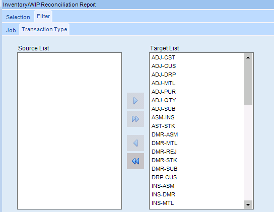 Open the Wip/Recon report, and go to the Filter -> Tran Type tab